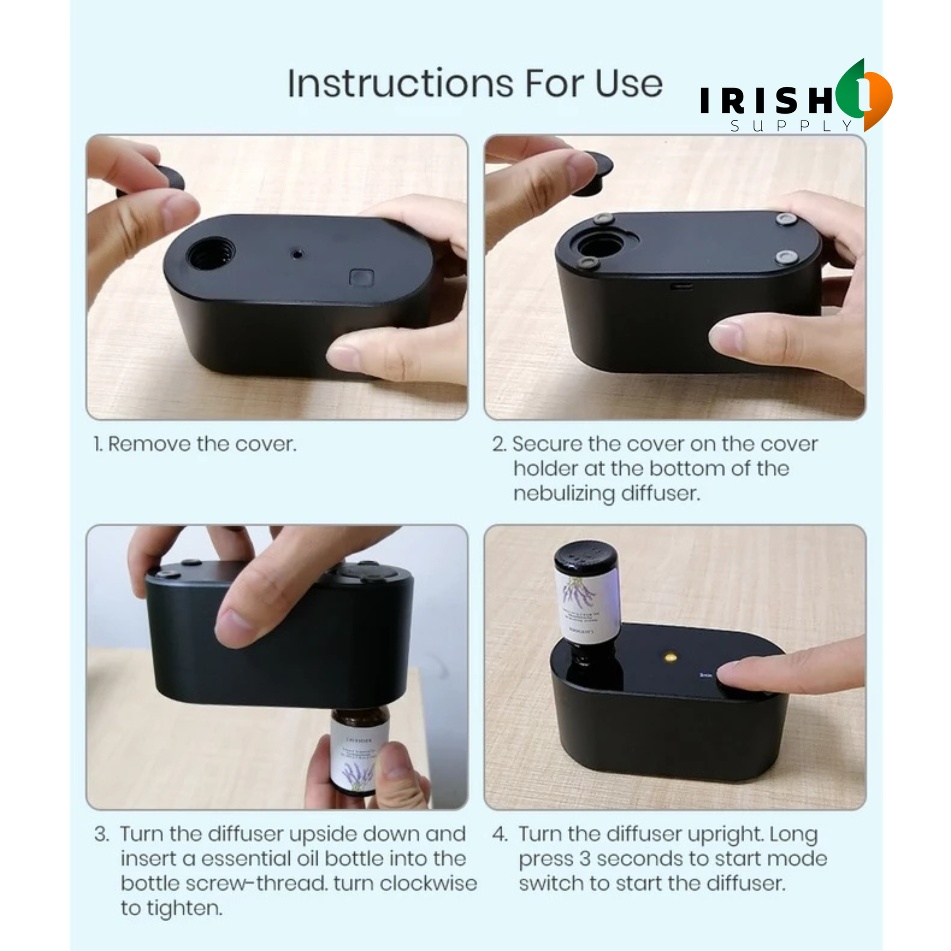 Step 1 – Turn AIRHAVEN upside down and screw in your essential oil bottle.