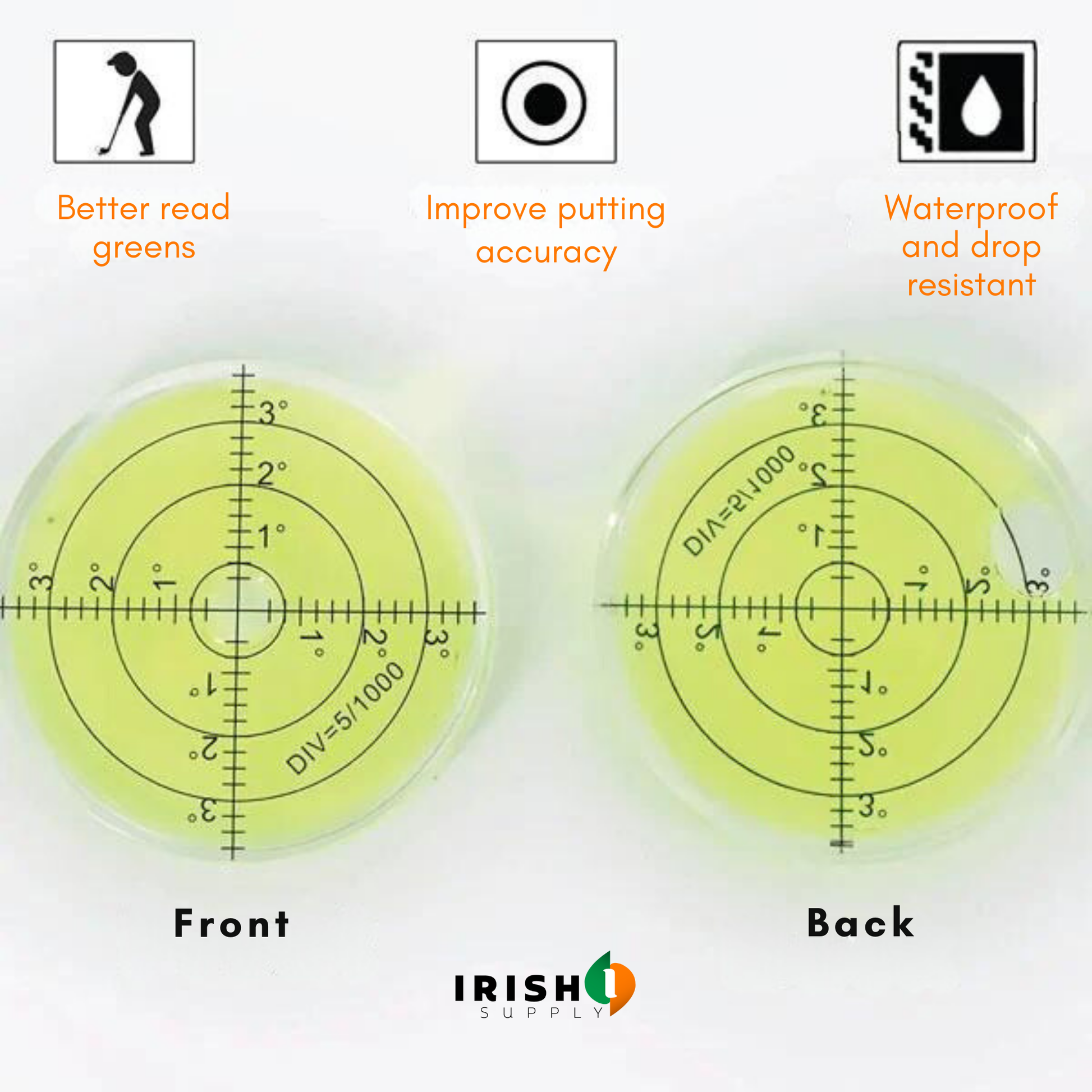 ✔️ High accuracy acrylic bubble level for precise putting surface alignment.