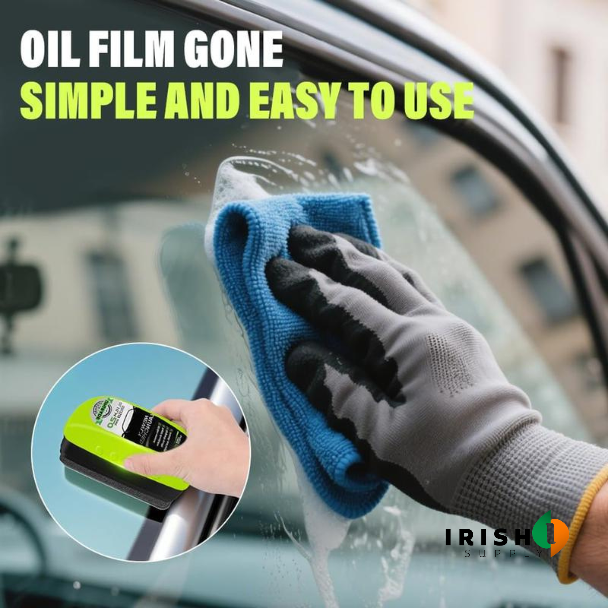 Made with a soft, specially designed rubber edge that’s tough on oil film but gentle on automotive glass. No harsh chemicals. No complicated steps. No risk to modern windshields when used as directed.