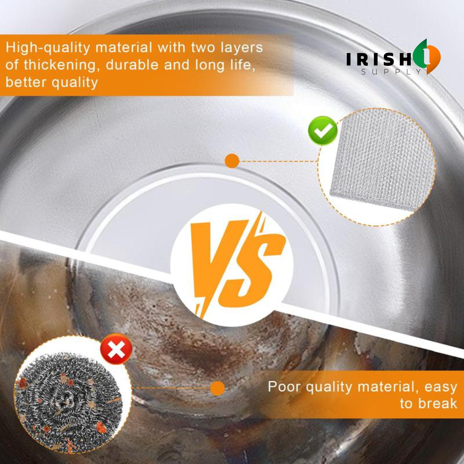 Drop it in the washing machine when needed and it comes out fresh — not falling apart. Reinforced edges prevent fraying, and no loose wires breaking off like old-school steel wool.