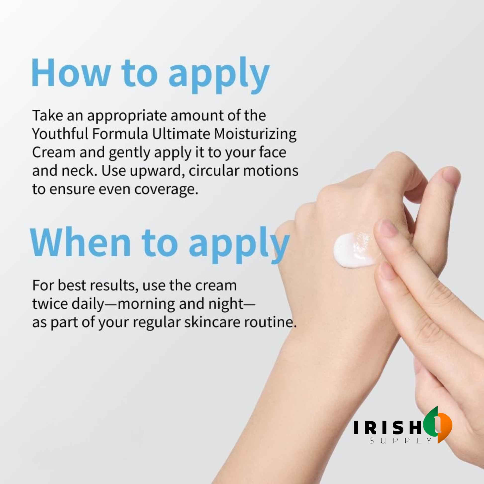 1️⃣ Apply a small amount to clean skin, morning and night.