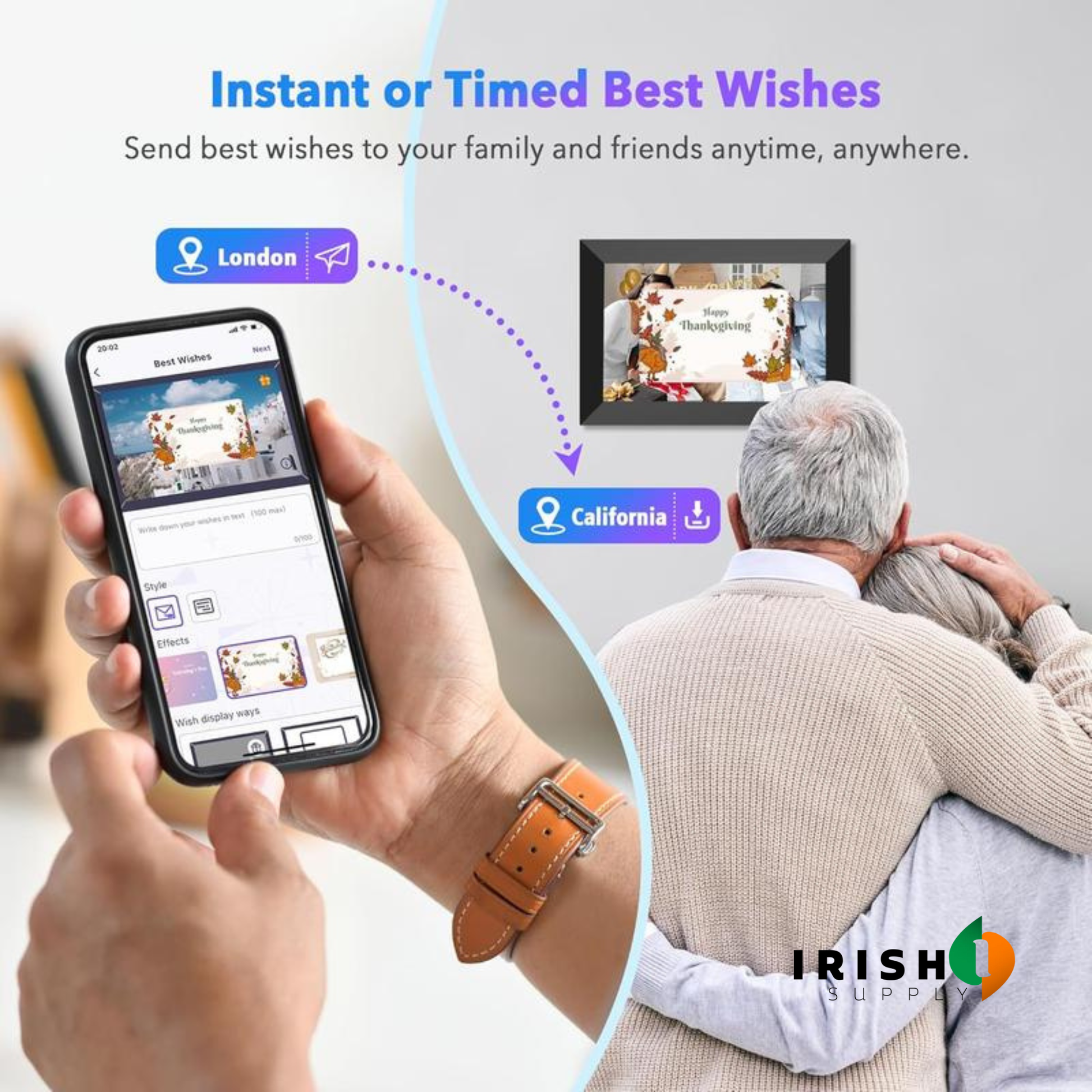 FAMILINK lets you upload photos and videos remotely from your phone, anytime, anywhere. No scrolling, no apps, no effort required from them — the memories simply appear on the frame.