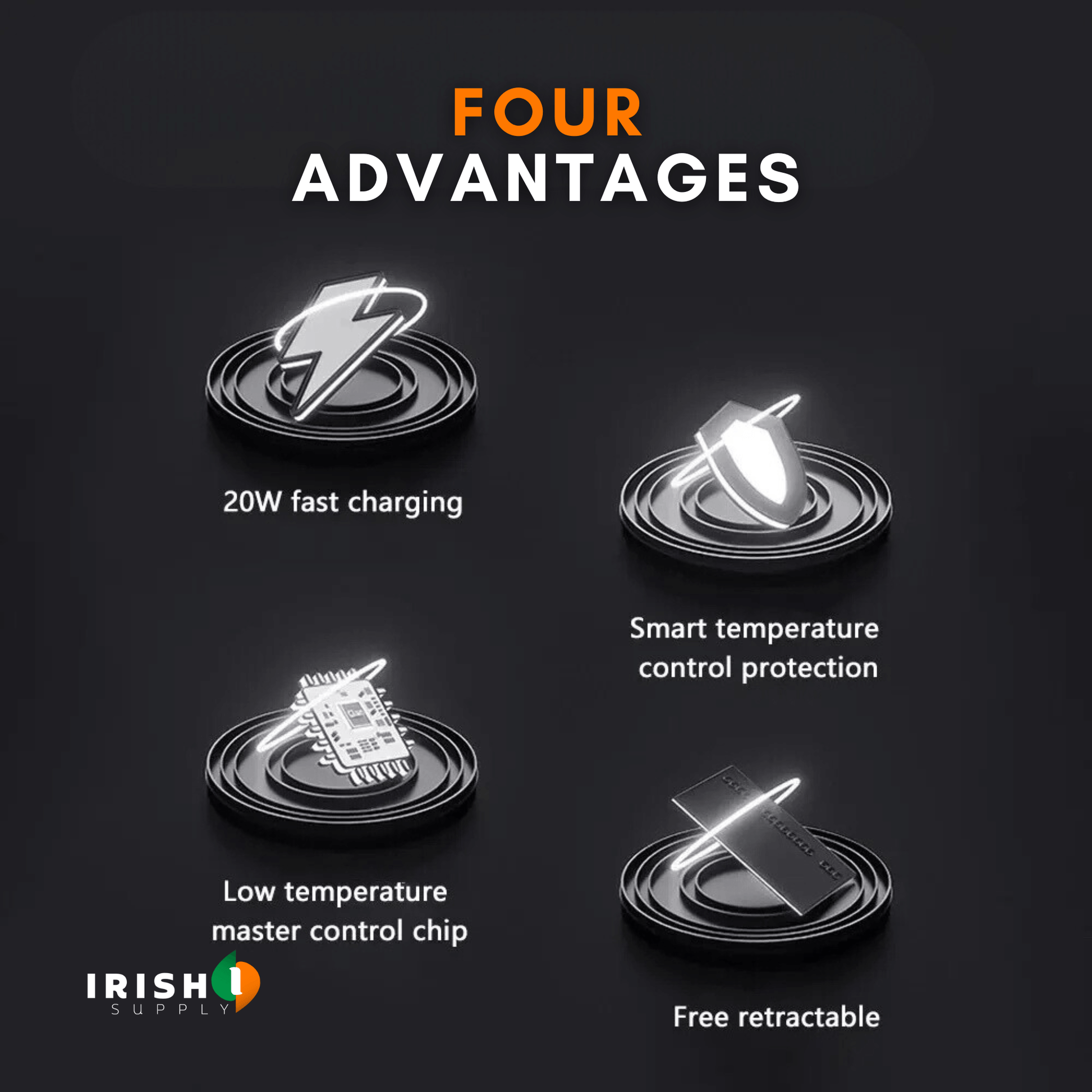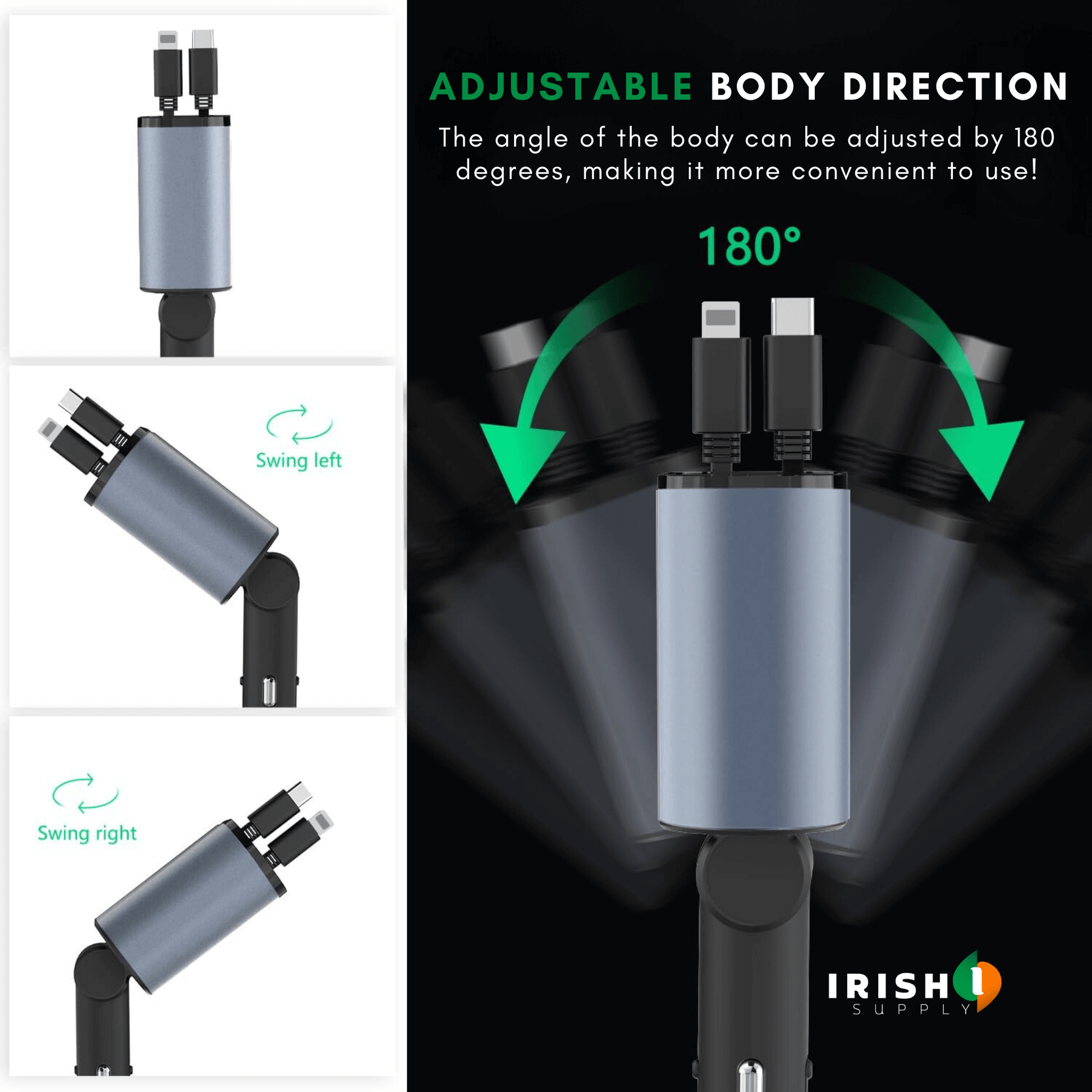 ✔️ Tangle-free retractable cable system (up to 80 cm)