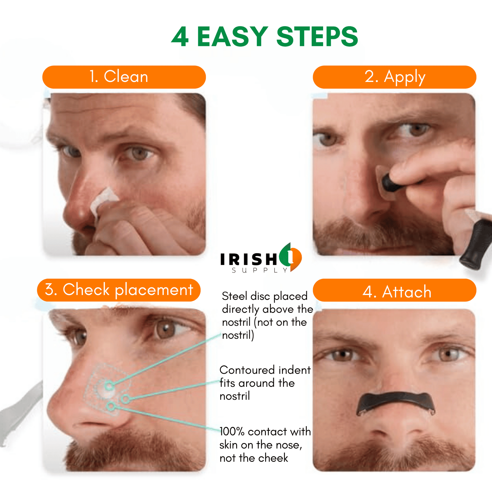 Step 1: Select the Right Size – Choose one of the included nasal bands that fits your nose comfortably.