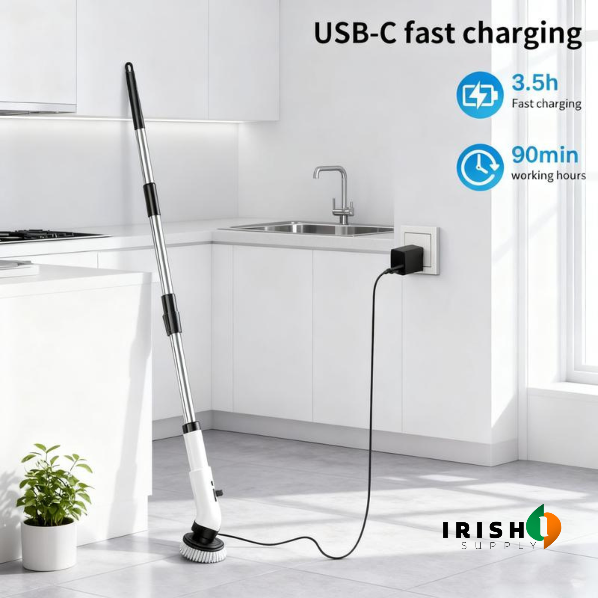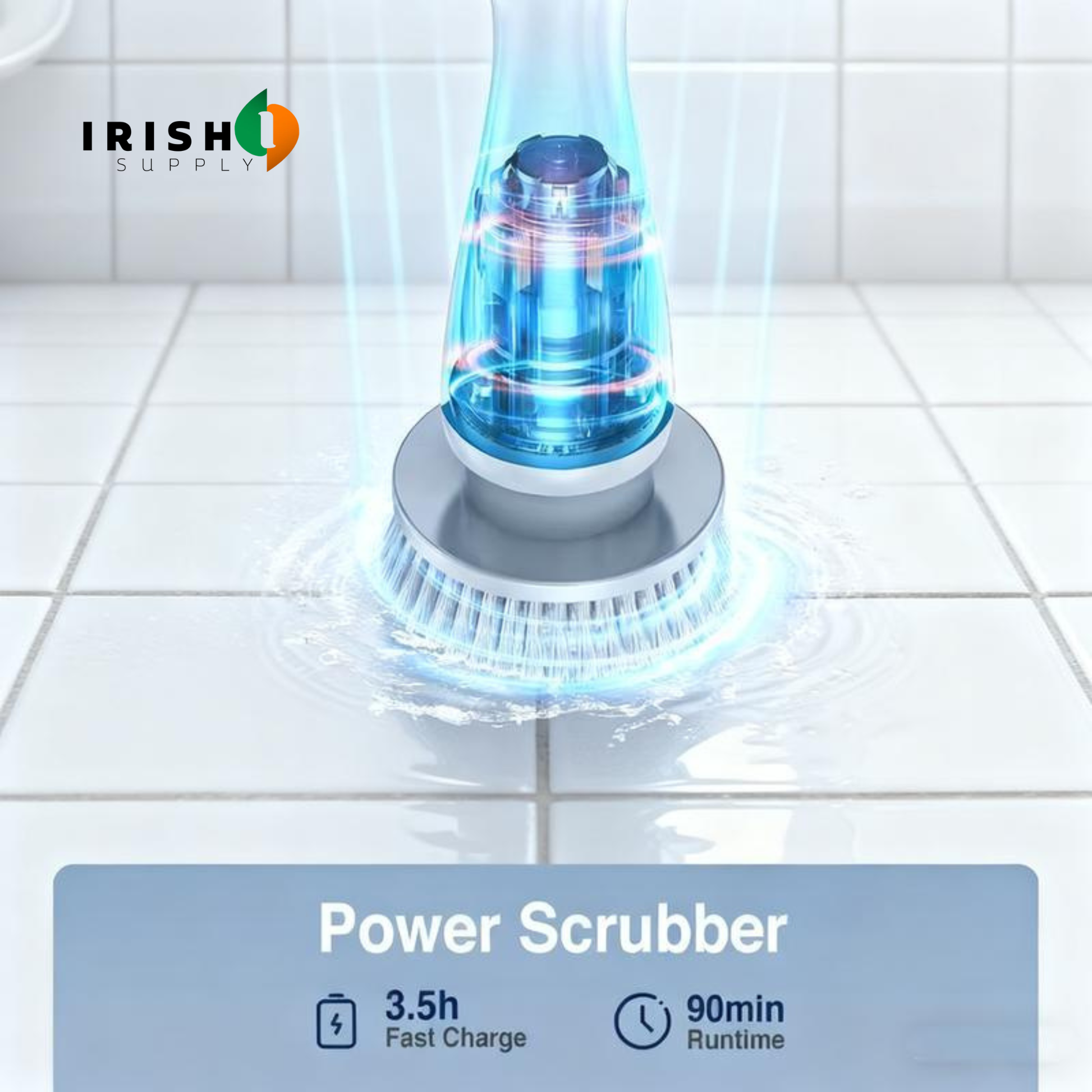 Irish homes are hard on bathrooms. The damp. The limescale. The grout that stains no matter how often you clean it. The soap scum that comes back the week after you've scrubbed it off. ORICLEAN was built for surfaces that actually need work — not light dust on a show-home tile. The motor has enough torque to cut through built-up limescale, black grout, and soap residue without you needing to press hard or scrub over the same spot repeatedly. You let the rotation do what your arm would normally do. You just hold it in position. It's also fully waterproof. So you're not being careful around it in a wet shower. You use it properly, rinse it off, hang it up.
