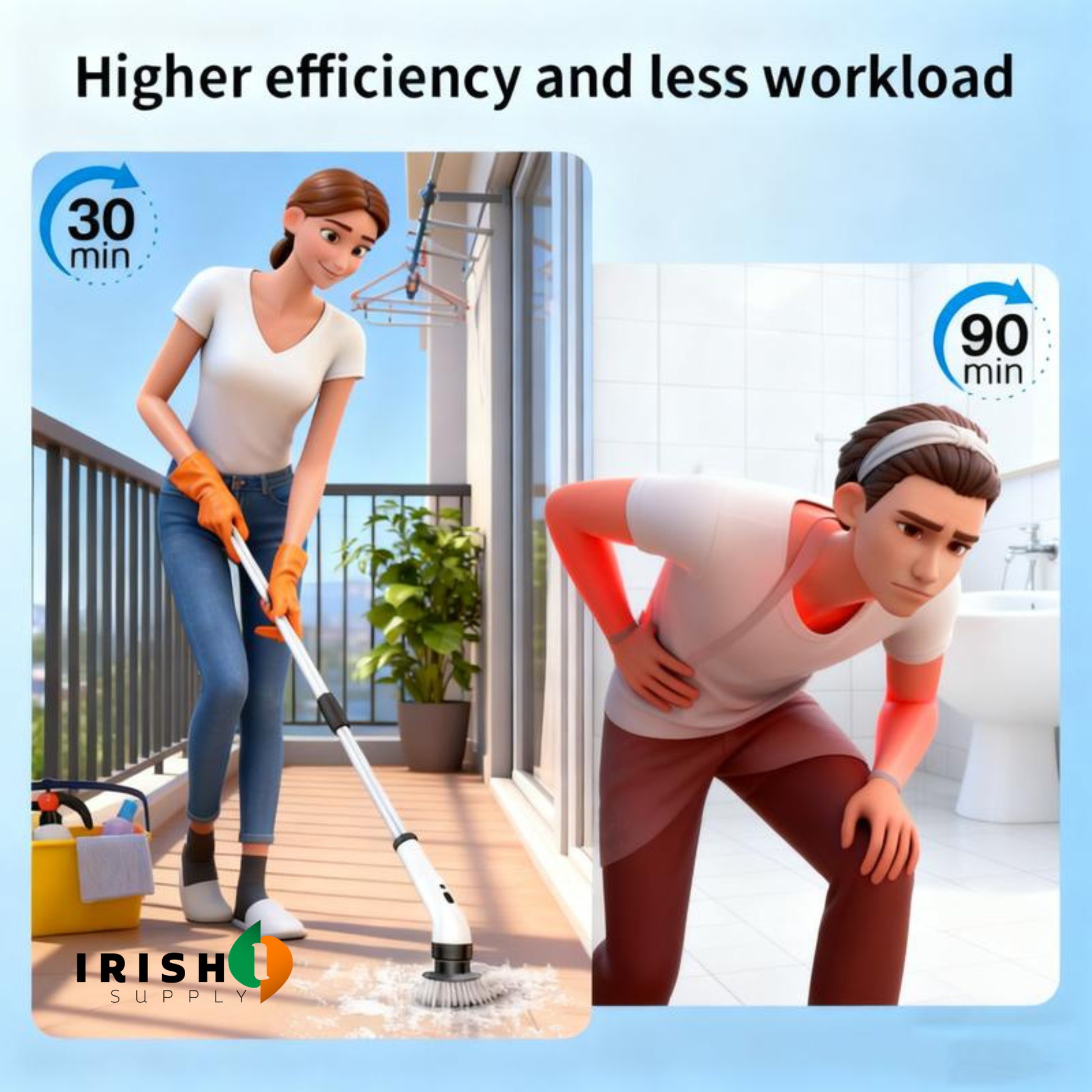 Scrubbing by hand works. But it costs you. Your knees on cold tiles. Your back bent over the tub. Your shoulders taking the load while the grime barely moves. You finish the bathroom and you feel it for the rest of the day. ORICLEAN removes that entirely. The motor spins the brush for you. The extendable handle means you never have to crouch, kneel, or hunch. You guide it. It does the scrubbing. The grime lifts. You stay upright the whole time. That's not a small upgrade. That's a completely different experience.