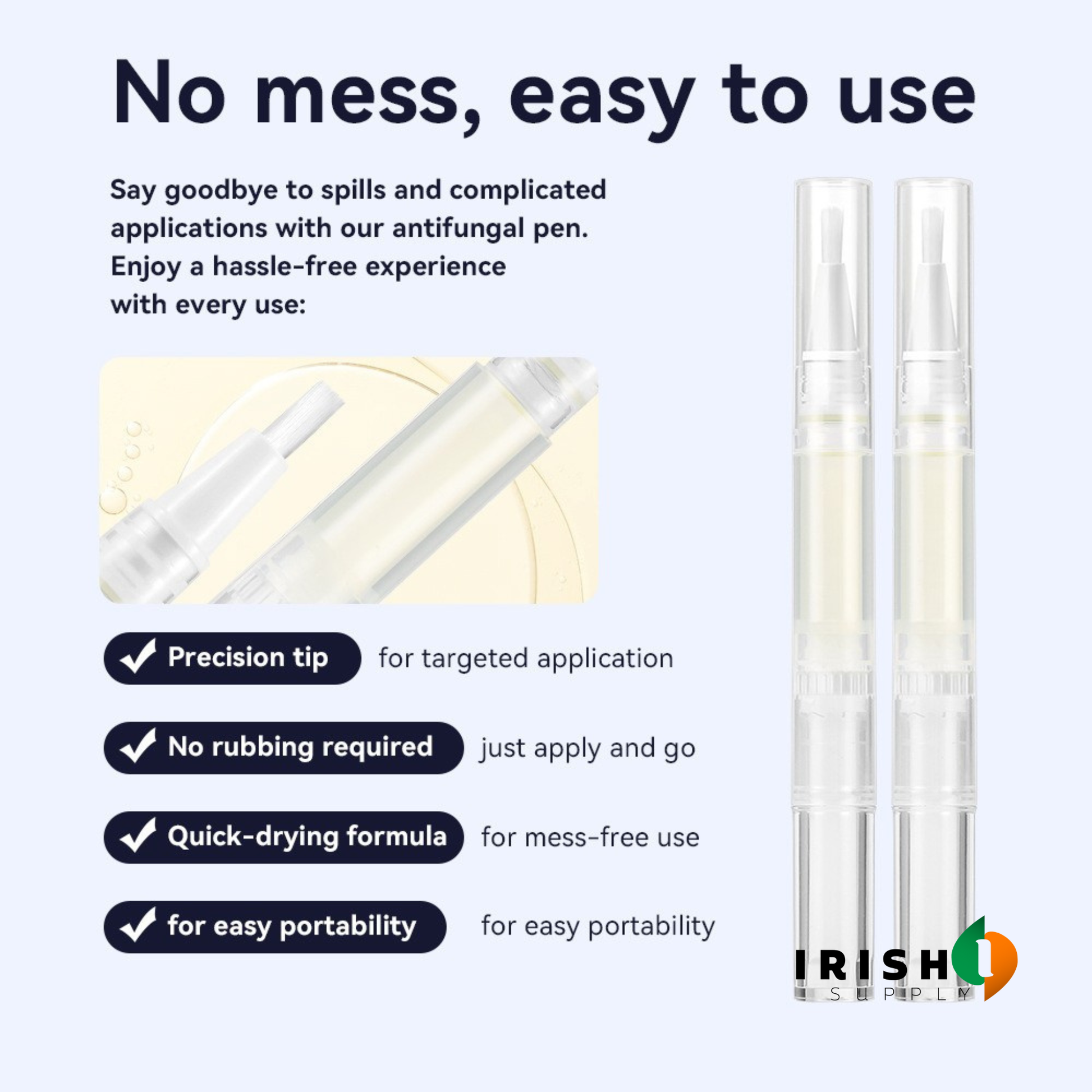 ✔️ Twist-and-brush pen for clean, precise application