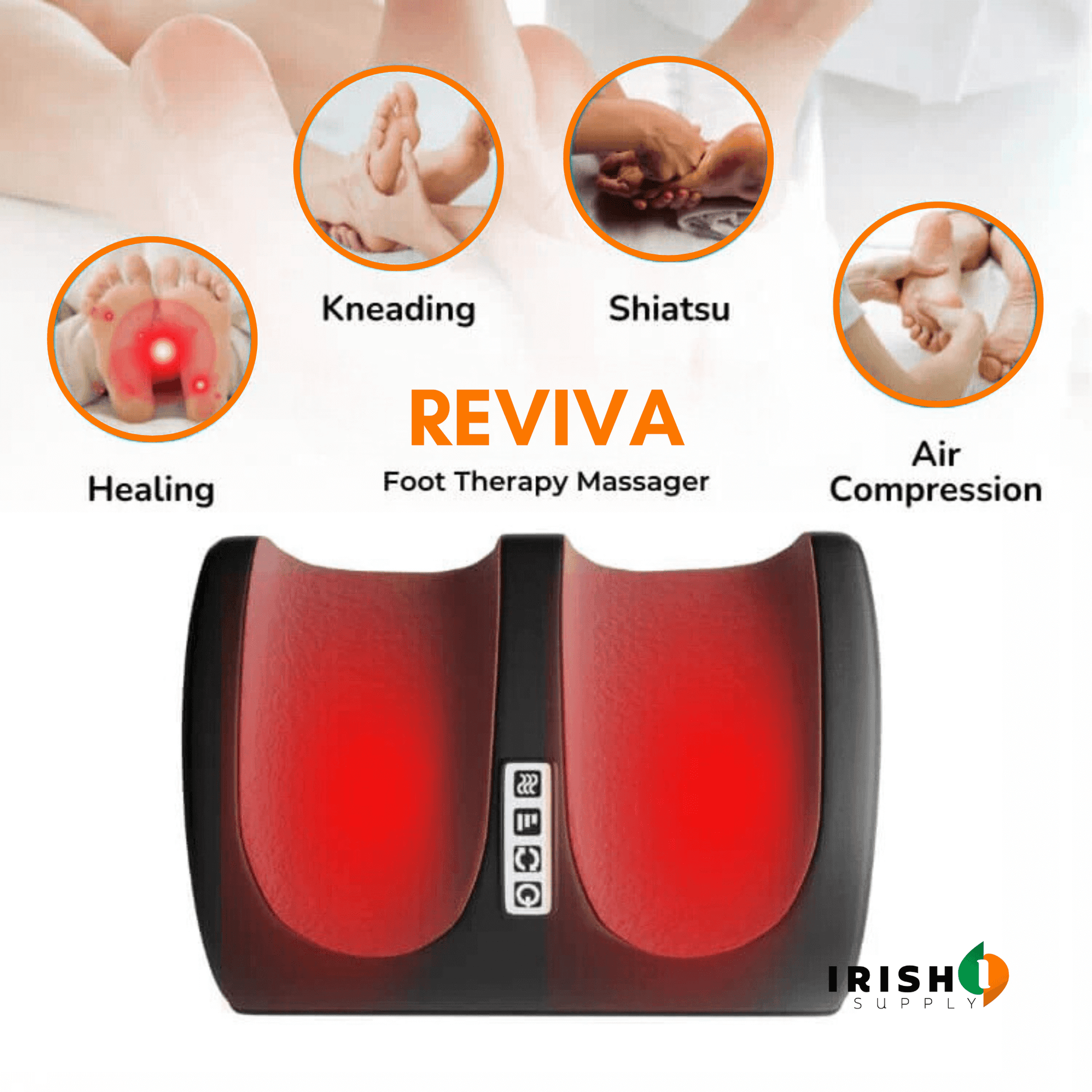 REVIVA uses advanced kneading rollers and soothing infrared heat therapy to target pain at its source. By promoting blood flow, reducing swelling, and relaxing tense muscles, it delivers deep, lasting relief for tired, aching feet and legs—perfect after a long day on your feet.