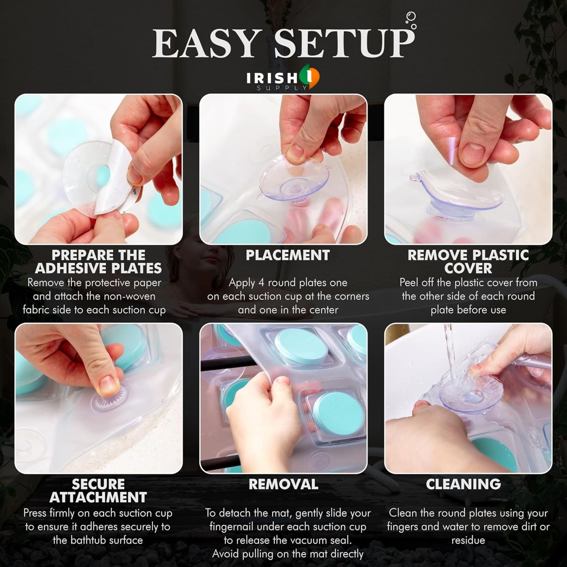 Clean and dry your bathtub surface to ensure suction cups adhere properly.