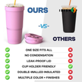 Early-morning coffees stay warm for hours. Iced drinks stay cold all day with no melting and no condensation soaking your hands, bag, or car console. No more rushing or rebuying drinks you already paid for.